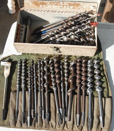 40 Vintage Bit and Brace Auger Drill Bits Unused and Used Vintage Hand drill auger woodworking 1 1/4 on Down. Various sizes