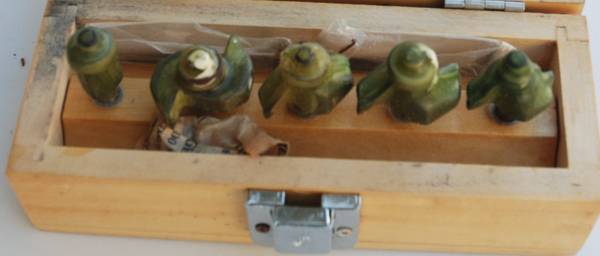 3 Boxes 'Woodtek' Router blades.1/4 Shank All 3 boxes have the same Blades 5 New Blade never used per box The Router blade pictured is the largest of the set. 1/4 shank 25 Each All 60 for all three