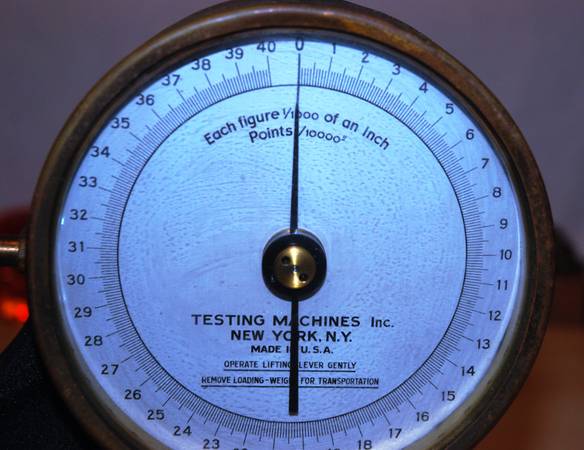Large Antique 'Testing Machine Inc.' New York, N.Y. Dial 1/1000 Thickness Testing Used to check the thickness of textiles Yes. still working 11" x 10"