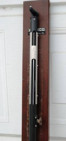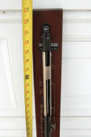 Princo model 453 Fortin type national weather service scientific barometer / thermometer. Hardwood back measures 43" long by 3" wide. It's in fine working order. Princo fortin design barometers are used by weather services, airports, research laboratories, universities, educational institutions, and various government agencies worldwide.