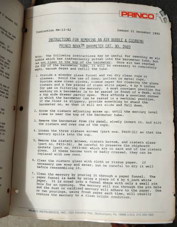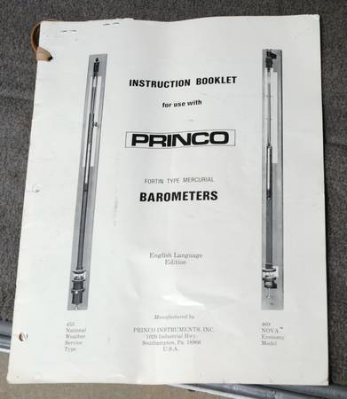 Princo, Model 453, Standard Mercurial Barometer. Manual included.