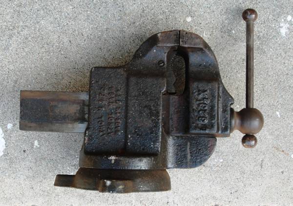 Vintage Athol 3 1/2" Jaws, Swivel Bench Vise Model # 323 1/2X. Big Vise Athol M&F Co, Athol Mass. Made In USA No Cracks, Rolls smooth and Tight.. Opens to 6" 16" Long x 10" Tall