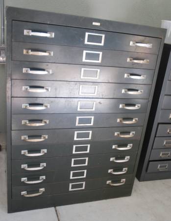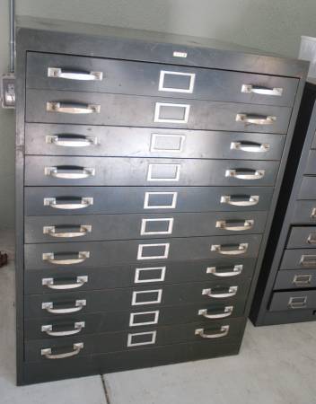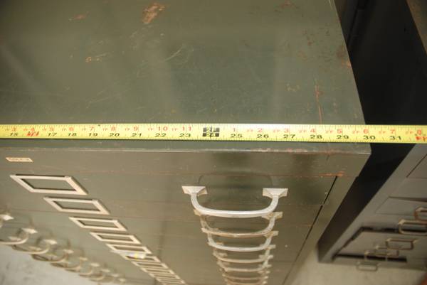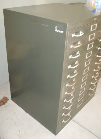 Vintage Cole USA 11 Drawer Cabinet. 30" x 26.5" x 40.5" Drawer Size: 27.5" x 26.25" x 2" Drawers have rail and Slide on Teflon pads. Very smooth and can handle alot of weight. Contents are parts for...