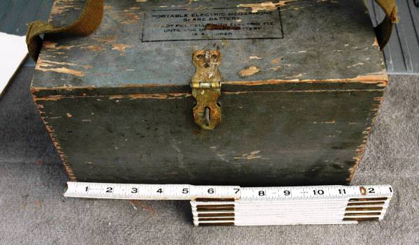 Vintage Military Portable Megaphone Spare Battery Box Wooden Dovetailed Sorry, no pictures of inside if interested ask for pictures. Clean, no partitions. Strap and Box in sturdy working Condition.