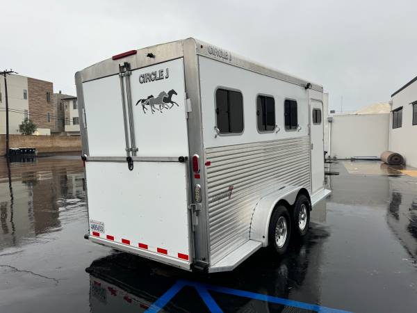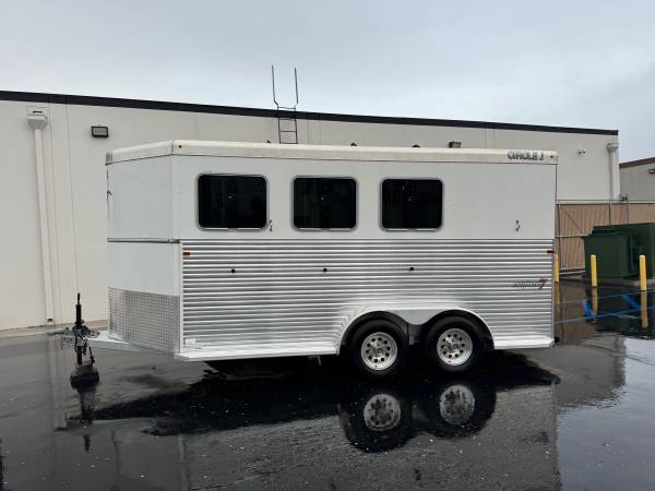 For sale is a very lightly used Circle J horse trailer. It has been used less than a dozen times since new. Holds three horses.