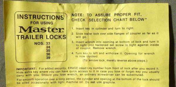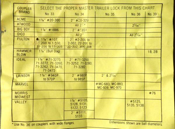 Master Trailer Coupler Lock Model No. 34 – New in Box $40.00 firm.