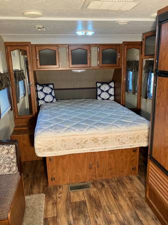 single slide out dinette, sleeps 4, custom built carrier for the generator, bikes and fire wood, Honda EU2000i generator, two light weight aluminum bikes with new tires; Nishiki Manitoba ($500 new at Dick's Sporting Goods) and Northrock CTM ($500 new at Costco), kitchen dishes, silverware, pots, pans, cooking utensils, owner's manual, all factory accessory operating instructions,and weight distribution hitch with trunnion bars.