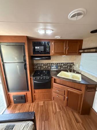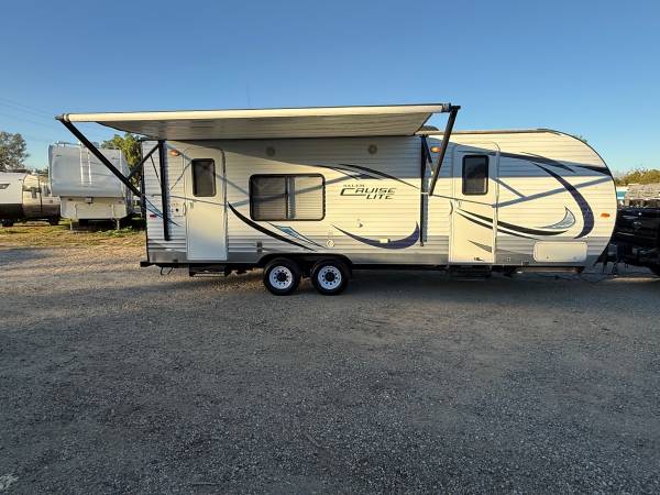 2015 Salem by Forest River 23 foot fully self contain double axle double door electric slide electric awning electric hitch fairly new tires really nice in and out fully self contained outside shower beautiful color combination and very spacious. They must see to appreciate book value is over 16 K asking $10900 Great for your holiday vacations are would make a great Christmas present for someone you love please call show contact info