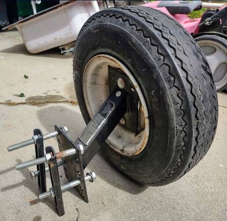 This spare trailer tire carrier fits all trailer tongues up to 3 in. wide and is easy to mount and install in a convenient location on your trailer. Constructed of sturdy welded steel, this trailer tire carrier is durable enough to fit four- and five-lug trailer wheels while resting easy on its zinc-plated mount. A great trailer tire accessory for any utility or boat trailer!