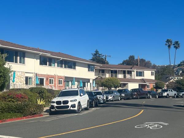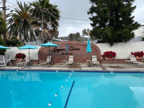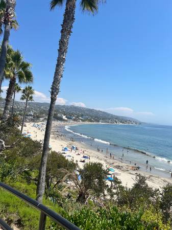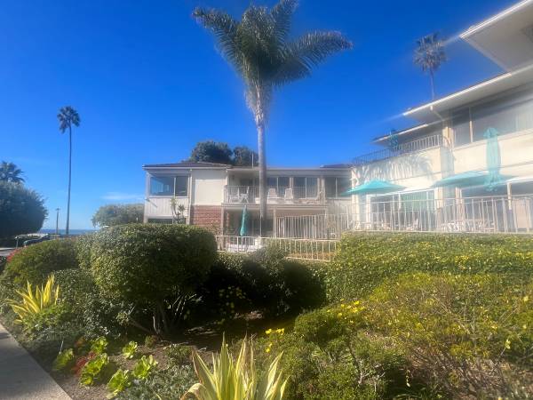 Across from the park and ocean. Stairs is going down to the beach. What a perfect vacation spot. We have a week Sept26- Oct 2 at our beautiful Laguna Shores resort that we cannot be there. It’s right on the cliff Drive across from Heisler Park, which has beautiful views also a swimming pool and hot tub.