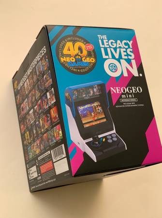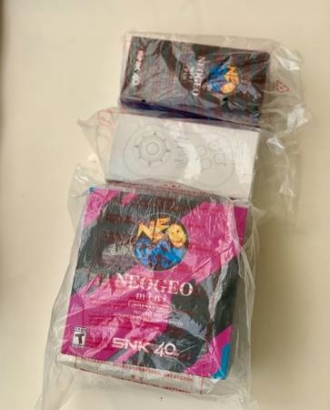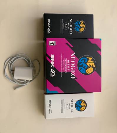 Neo Geo Mini International retro micro arcade console plus 2 controllers (1 still sealed). Everything is in excellent condition. A power adapter is also included (normally doesn’t come with one)....