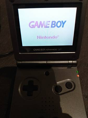 Nintendo Game Boy Advance SP, grey, works great, holds a charge and comes with a power supply and game. Has a few scuffs on the case but the screen is in great condition. This system can play all Game Boy cartridges including Game Boy, Game Boy Color, and Game Boy Advance carts.