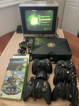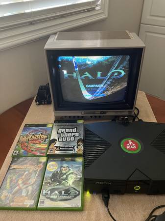 Physical games included: Halo, Grand Theft Auto, Roller Coaster Tycoon and Dragon’s Lair. All are complete in box.