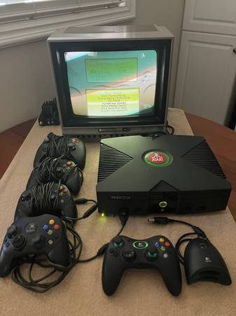Five (5) controllers are included: four (4) OEM and one (1) Logitech wireless precision controller. The OEM controllers work, but have some plastic patina. The Logitech is in great condition.