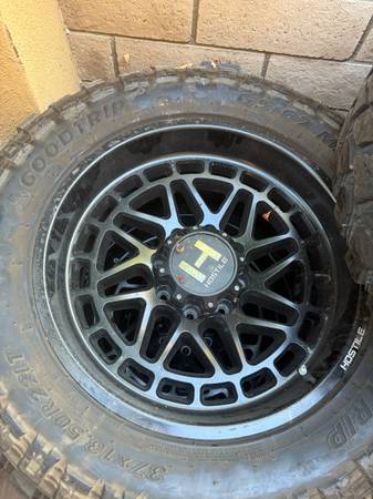 For sale is a set Hostile Reaper H122 22x10 -25 mounted on 37" Good Trip Tires. They came off a 2020 Denali 2500. Lug pattern is 8x180 which fits 2011 and up GMC/Chevy trucks.