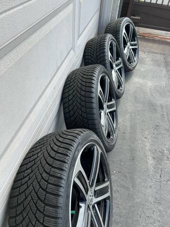 Complete set of Volkswagen Golf R Cadiz 18” rims and Bridgestone 225/40/18 Blizzak tires.