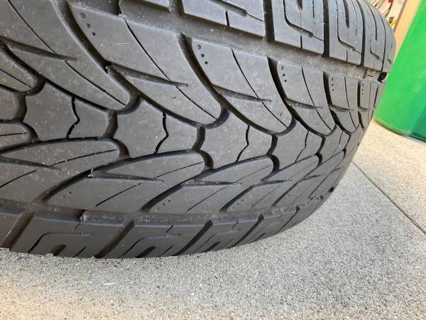 Hi you are looking at slightly used 26” Lexani wheels and tires set from Cadillac Escalade. These wheels were on the vehicles for less than 4000 miles. Lionhart Tires have about 85% threads. Purchased brand new for over $4K. It will fit all Escalade and others Chevy vehicles with same bolt pattern. TPMS sensors included. Pick up in Irvine only. Wheels are 26 x 9.5 and tire size is 295/30ZR 26. As you can see from the photos, these wheels are in excellent condition. One wheel has very minor curb rash on it.