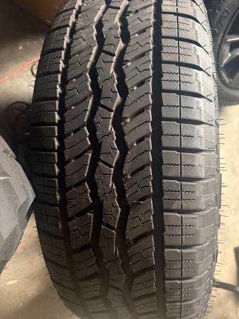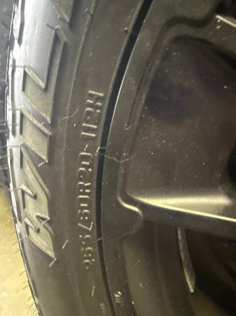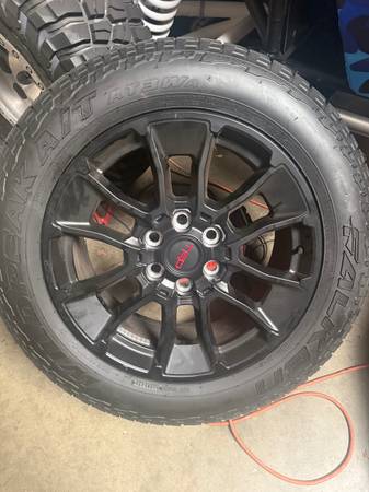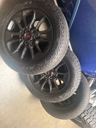 This is a brand new complete set of four wheels and tires. I just bought a brand new 2025 TRD tundra and put on aftermarket wheels and tires so these were immediately taken off, less than 30 miles. These include all of the Factory lug nuts. Would cost more than double to replicate this package!
