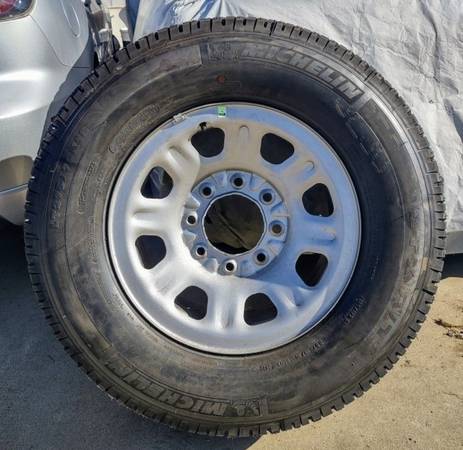 Zero miles on the like new Michelin LTX A/T2 LT275/70P18 tire. This is the factory original (OEM) spare wheel and tire. Just the tire new is $289 + tax at America's Tire. See second pic above. Fits model years 2011 thru 2023.