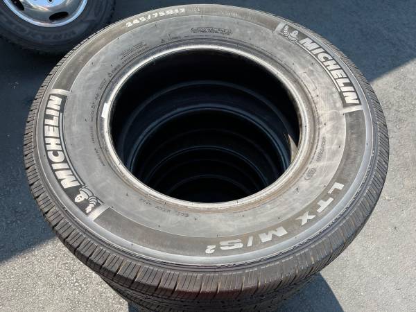 (4) 245/75R17 Michelin LTX Tires for sale! Michelin Tires 245/75R17 Tires have very good tread (50%) Only asking $200, Priced to sell fast, no offers -- Form of payment: Cash only. Call or text -...