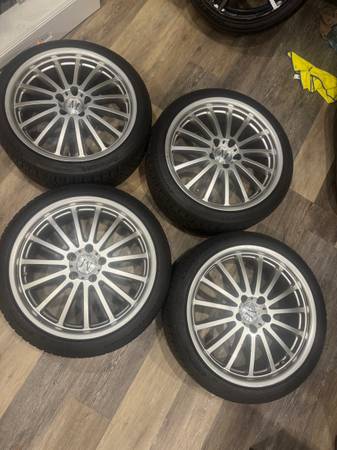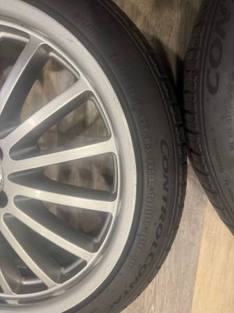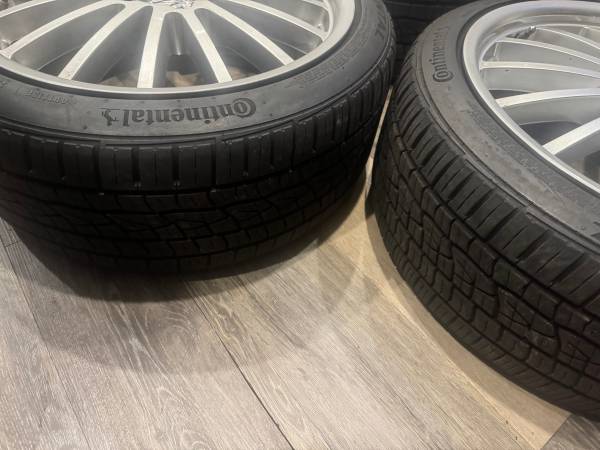 Set a four wheels and tires, Fits Mercedes 5x112 18 inch 225/40/18 Continental sports plus tires, good tread.