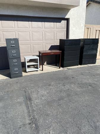 Metal cabinet office drawer two 5 drawers dressers wooden table N wood cabinet on rollers 4 industrial heavy duty shop vacs FREE FREE FREE Behind the house via the alley ways 19 Tangerine Irvine Ca...
