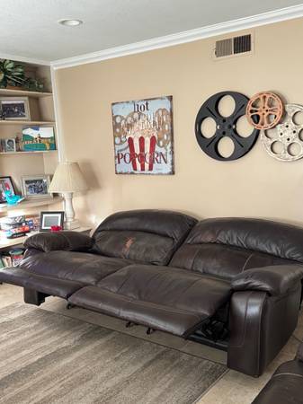 Very comfortable dark brown leather couch with dual power recliners! It comes from a clean non-smoking home with pets and is fully functional in good condition! Must be able to haul away! Thank you!...