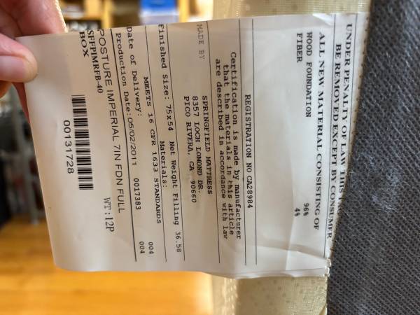FREE, no use, FULL BOX SPRING made by Springfield Mattress